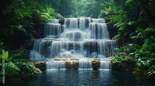 © Factory Stock, Fototapeta premium Serene Waterfall in Lush Tropical Paradise