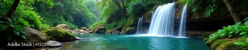 © Jiampoj, Obraz premium Serene waterfall's cascade fills tranquil jungle pool, cascade, energy, peaceful scene