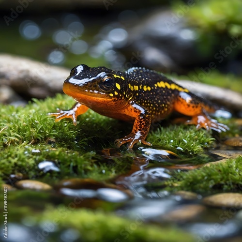 © KeeriwalaGamage, Fototapeta premium Serene Waters: Alpine Newt Gliding Through a Pristine Mountain Stream