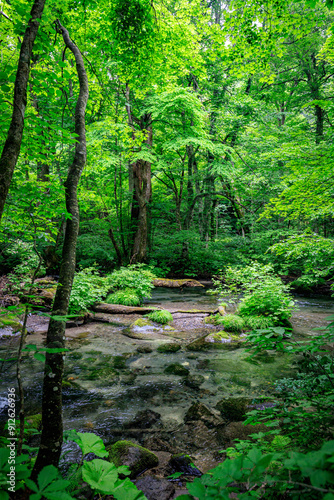 © Bossa Art, Obraz premium Serene Waters Flowing Through Lush Oirase Forest, Aomori, Japan