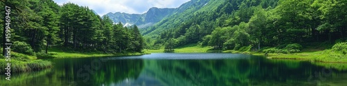 © Thunyarat, Fototapeta premium Serene waters mirroring the sky and surrounding nature.