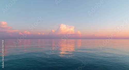 Fototapeta premium Serene Waters, Rosy Skies. A Pastel Dreamscape of Clouds and Reflection.