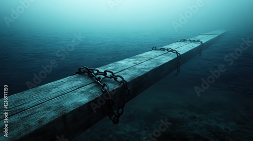 © tinnakorn, Obraz premium Serene waterside retreat, wooden dock with rope detail overlooking tranquil waters