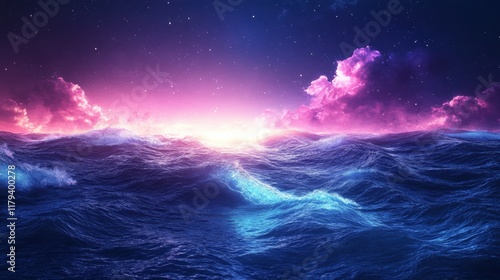Fototapeta premium Serene Waves Under Colorful Sky at Dawn with Gentle Ripples