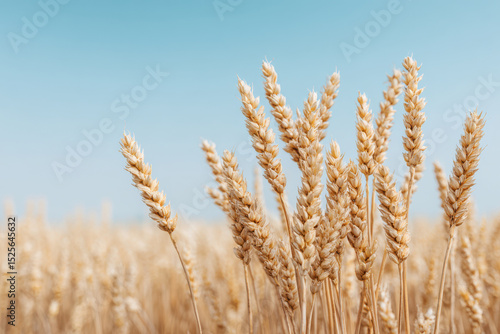 Fototapeta premium serene wheat field with golden ears swaying gently under clear blue sky