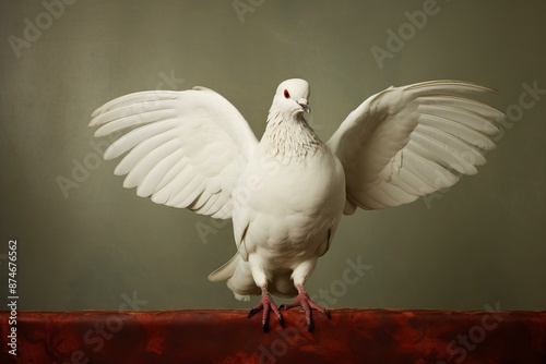 © juliars, Obraz premium Serene white dove with outstretched wings poised on a vintage backdrop, symbolizing peace