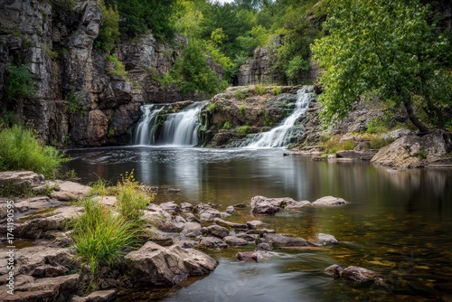 Fototapeta premium Serene Willow Falls in Hudson Wisconsin: A Summer Cascade at Willow River...