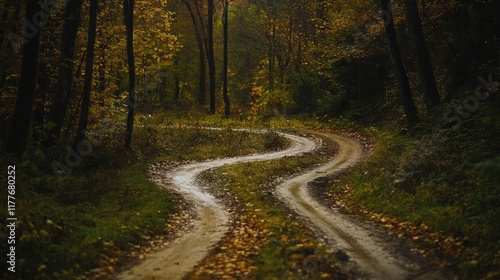 Naklejka premium Serene Winding Path Through Autumn Forest