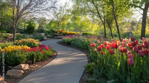 © arthit, Fototapeta premium Serene Winding Path Through Blooming Flower Park