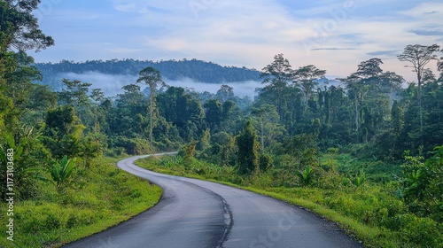 © novitasary, Fototapeta premium Serene Winding Road Through Lush Tropical Rainforest