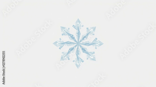 Fototapeta premium Serene Winter, A Delicate Ice Blue Snowflake on a Clean White Canvas