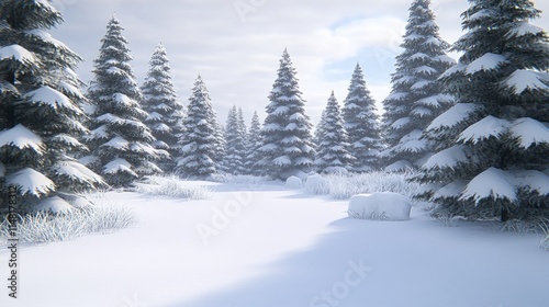 Naklejka premium Serene Winter Forest Landscape Snow Covered Pines