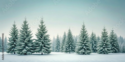 Fototapeta premium Serene Winter Landscape Featuring Majestic Snow-Covered Evergreen Trees in a...