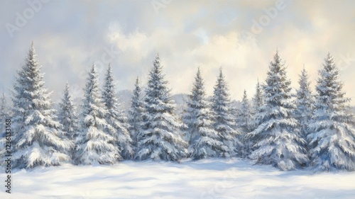 Fototapeta premium Serene Winter Landscape of Snow Covered Trees