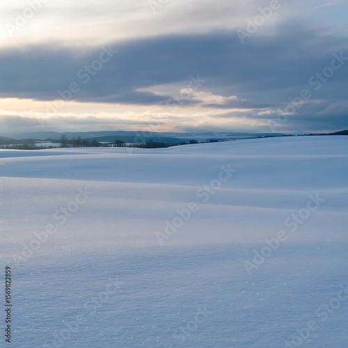 © sayed, Fototapeta premium Serene Winter Landscape Snow Covered Fields at Sunset