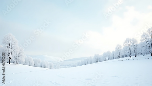 Obraz premium Serene Winter Landscape Snow-Covered Trees and Pristine Fields