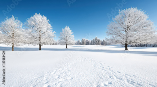 Fototapeta premium serene winter landscape with snow covered trees and clear blue sky