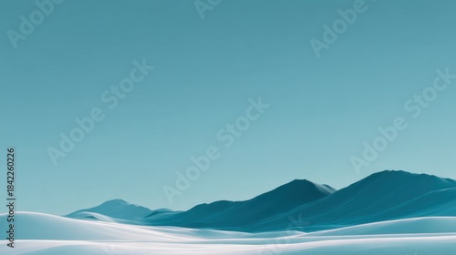 Fototapeta premium Serene Winter Landscape with Soft Snow-Covered Hills Under Clear Blue Sky in...