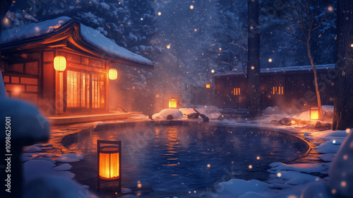 Obraz premium Serene Winter Onsen