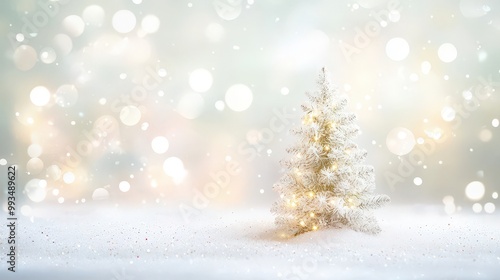 © M2A, Naklejka premium Serene Winter Scene with Decorated Christmas Tree in Snowy Landscape, Perfect for Festive Holiday Greetings, Joyful Season Celebrations, and Background for Holiday Cards