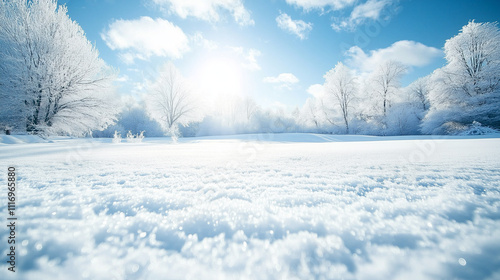 Obraz premium Serene Winter Snowscape Under Sunlight