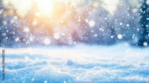© song, Naklejka premium Serene Winter Snowscape Under Sunlight