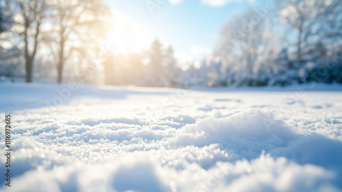 Fototapeta premium Serene Winter Snowscape Under Sunlight