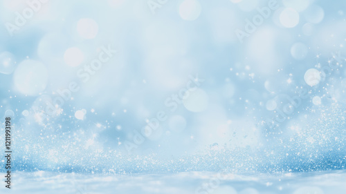 Fototapeta premium Serene Winter Wonderland: A captivating blue backdrop of shimmering snow and sparkling bokeh lights conjures a sense of tranquility and festive cheer. The abstract.