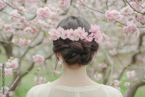© Nico, Obraz premium Serene Woman in Blossoming Garden