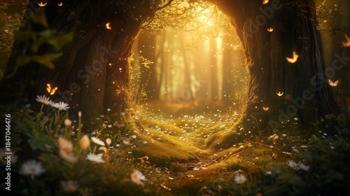 Fototapeta premium Serene woodland scene filled with wildflowers