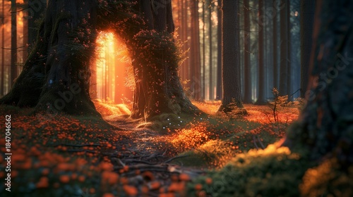 © vlntn, Fototapeta premium Serene woodland scene with blooming wildflowers