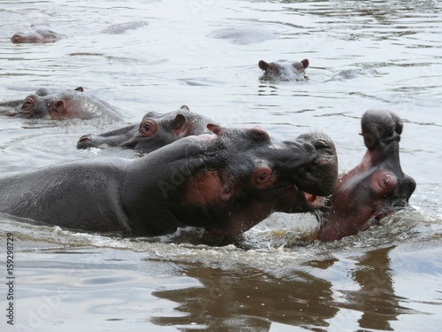 Fototapeta premium Serengeti National Park in Tanzania, Hippo Pool fighting