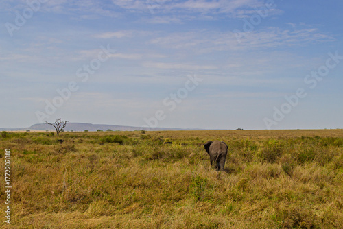 © rabbitholephoto, Naklejka premium Serengeti National Park, Tanzania: Lone Elephant on the African Savanna