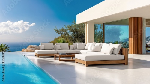 Fototapeta premium Serenity by the Poolside in Modern Outdoor Space