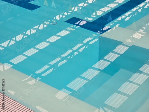 © behindlens, Obraz premium Serenity in Blue: Empty Swimming Pool with Reflections