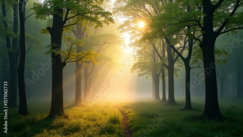 © RobithohHimmatul, Naklejka premium Serenity in the Forest Morning Mist