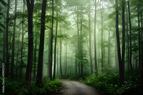 Obraz premium Serenity in the Mist: A Foggy Morning in a Dense Forest Inviting Reflection...