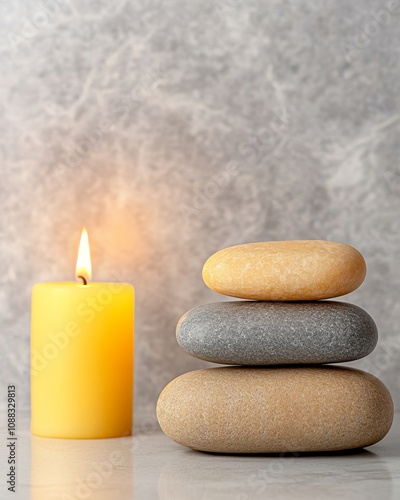 Fototapeta premium Serenity Spa Candle Stones Relaxation Wellness Zen