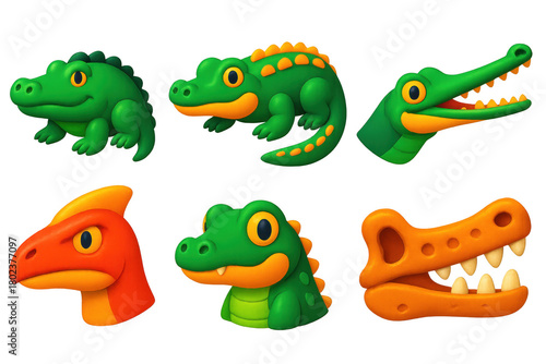Fototapeta premium Series of cartoon animal heads, including a crocodile, a dinosaur