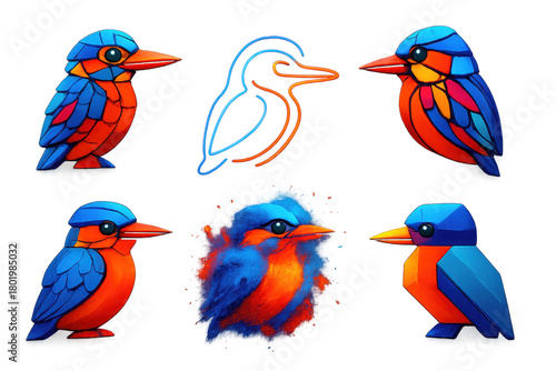 © Александр Михайлюк, Obraz premium Series of colorful birds, each with a unique design