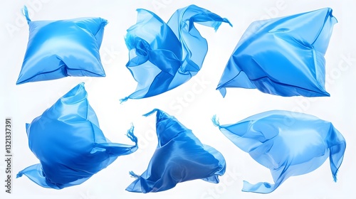 Naklejka premium Series of Dynamic Blue Fabrics Floating Against a Pure White Backdrop