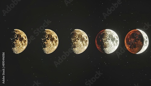 © Ahmad, Fototapeta premium Series of photographs showing progression of Moon phases and Blood Moon eclipse