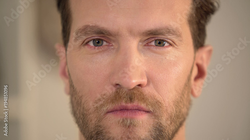 Obraz premium Serious angry man looking into camera, annoyed male face close-up, problems