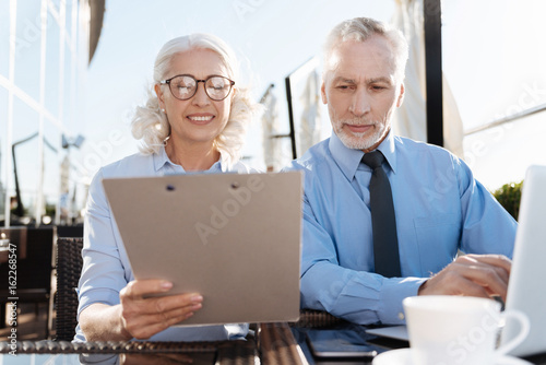 © zinkevych, Fototapeta premium Serious bearded man looking at folder