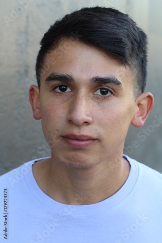 Obraz premium Serious Latino teen outdoors close up