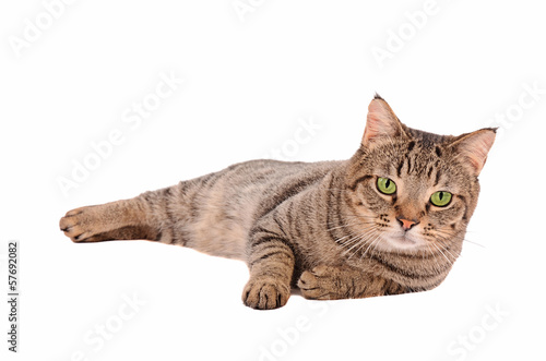 © Damien Richard, Obraz premium Serious looking tabby cat on a white background