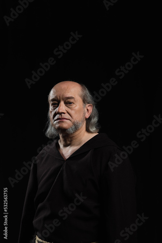© LIGHTFIELD STUDIOS, Fototapeta premium serious priest with grey hair and beard looking at camera isolated on black.