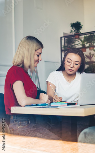 © BullRun, Obraz premium Serious student explaining university project at workplace