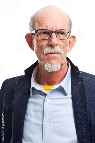 Obraz premium Serious well dressed senior man with glasses. Isolated.