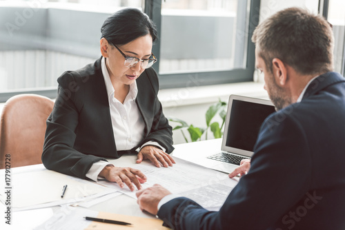 © Yakobchuk Olena, Fototapeta premium Serious woman and male watching plan